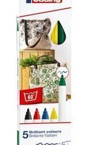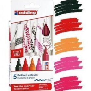 Estuche con 5 rotuladores para tela Edding 4600. Punta redonda 1mm. Colores surtidos básicos
