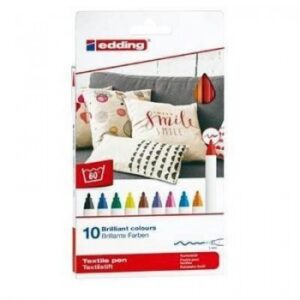 Estuche con 10 rotuladores para tela Edding 4600. Punta redonda 1mm. Colores surtidos fríos