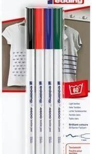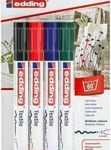 Estuche con 4 rotuladores para tela Edding 4600. Punta redonda 1mm. Colores surtidos básicos