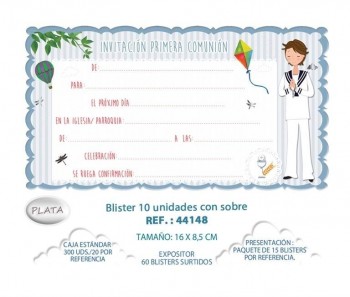 BLISTER 10 INVITACIÓN + SOBRE COMUNIÓN NIÑO COMETA 44148 ARGUVAL