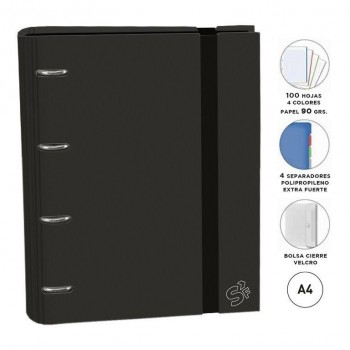 Carpebloc Senfort 2400416 A4 4 anillas 35mm 100H 90G 5×5 360º Negro