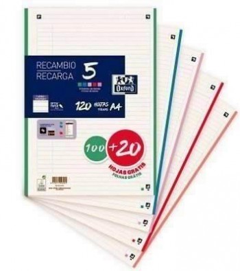 Recambio Oxford 400159876 A4 100+20H 90G 4taladros horizontal pastel