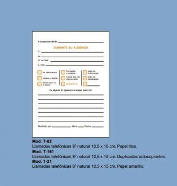 Talonario llamadas telefonicas T161 P/10 8º autocopiable